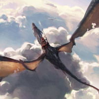 the tail end of the dragon and the rider who seems to have some sort of gear or armor on. The image evokes