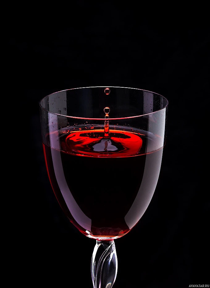 На снимке изображен бокал с красным вином. На первый взгляд кажется, что бокал наполовину полон, а на его верхушке осталась капелька вина, что, возможно, указывает на то, что его только что налили или начали подавать по-новому.