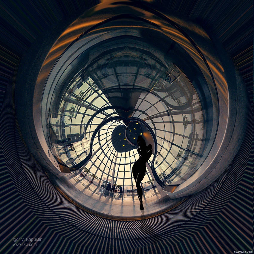 a public space with what seems to be a large dome-like structure that has a metallic look. There are lights around, suggesting