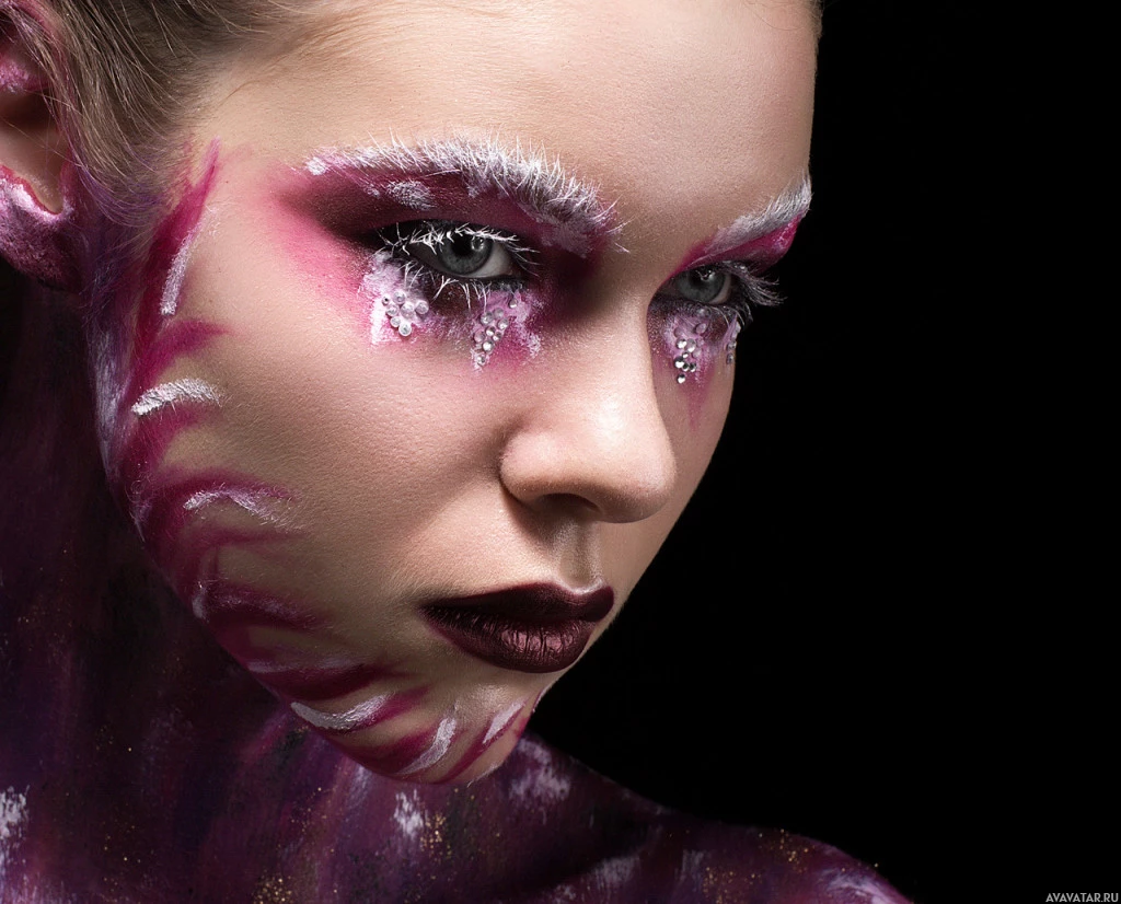 body art, predominantly on the face and neck. The design includes