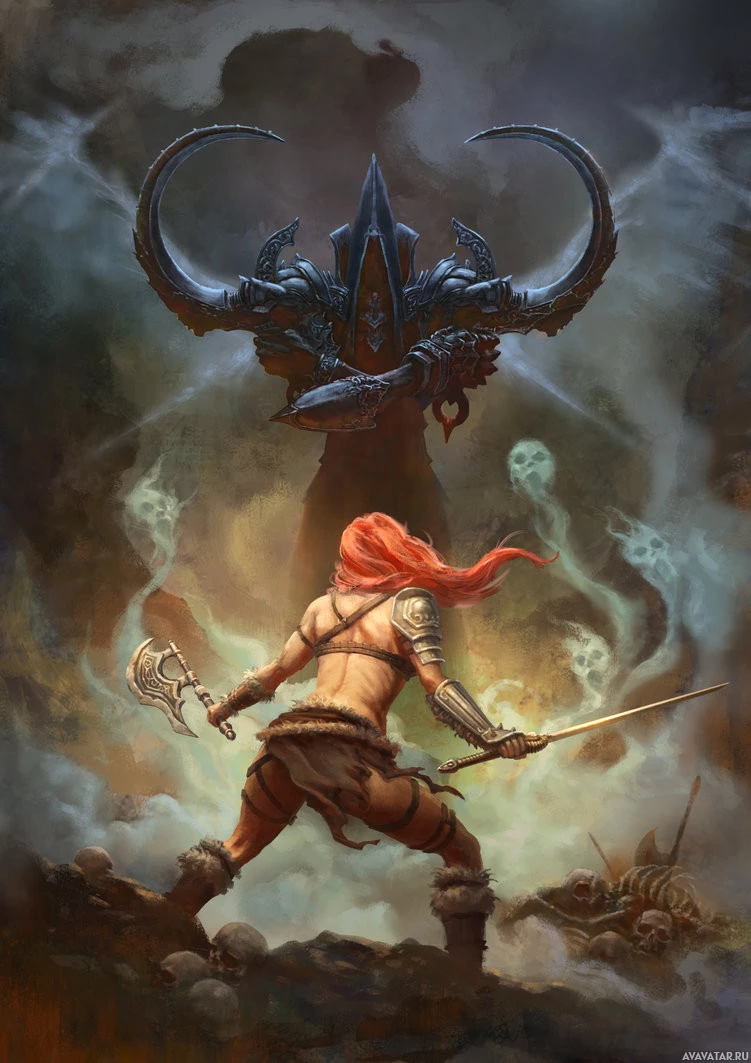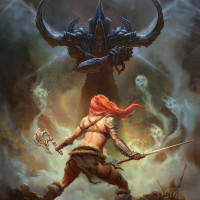 battle scene with elements of dark fantasy and action-adventure themes, which are typical in the "Diablo" series.