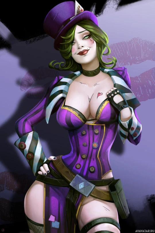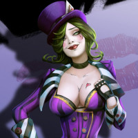 green hair and is wearing a purple top hat, a corset, and a leather jacket with a skull emblem on the chest. Her expression is one of defiance or challenge. The artwork style suggests it could be inspired by modern comic book illustrations.