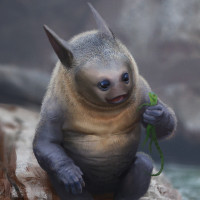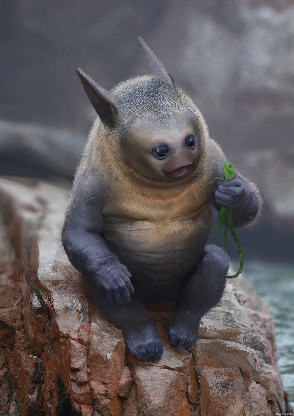 a fantastical creature that appears to be a fusion of a koala and a lemur, commonly referred to as a "monster" in this context. It has the round head and