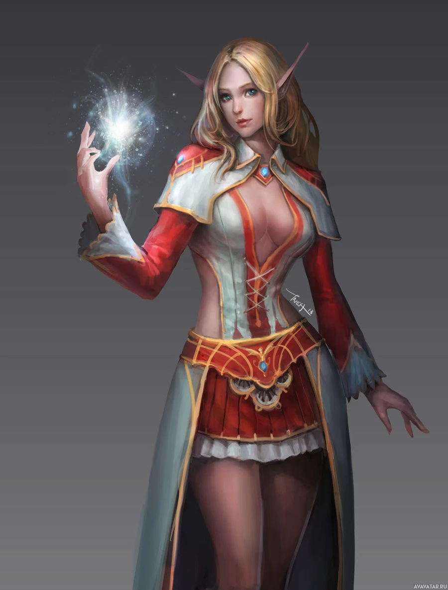The image features a fantasy-style character, commonly referred to as an elf. This character is depicted with pointy ears, which are iconic for elves in