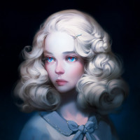 pale skin and hair, giving the impression that she may have an ethereal or otherworldly appearance. Her expression is neutral, and she seems to be looking directly at the viewer.