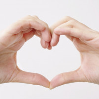The image shows a pair of hands forming the shape of a heart. This is a common gesture used to express love, appreciation, or other positive emotions. The hands are positioned close together with fingers slightly spread apart and thumbs touching at the center, creating the classic heart shape.