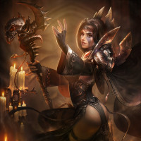 magic ritual. The background includes glowing candles, which adds to