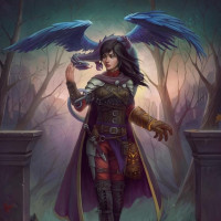 a female character with wings, suggesting she might be an angel or another type of mythical creature. She has long