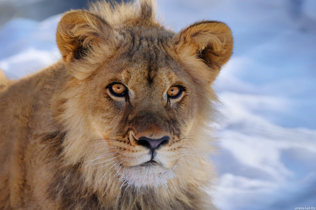 The image features a lion, which is an animal known for its distinctive features such as the mane of hair along the neck and back, long claws on its