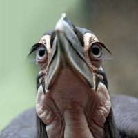 The image shows a bird with large, distinctive features, including an elongated beak and