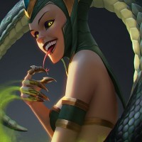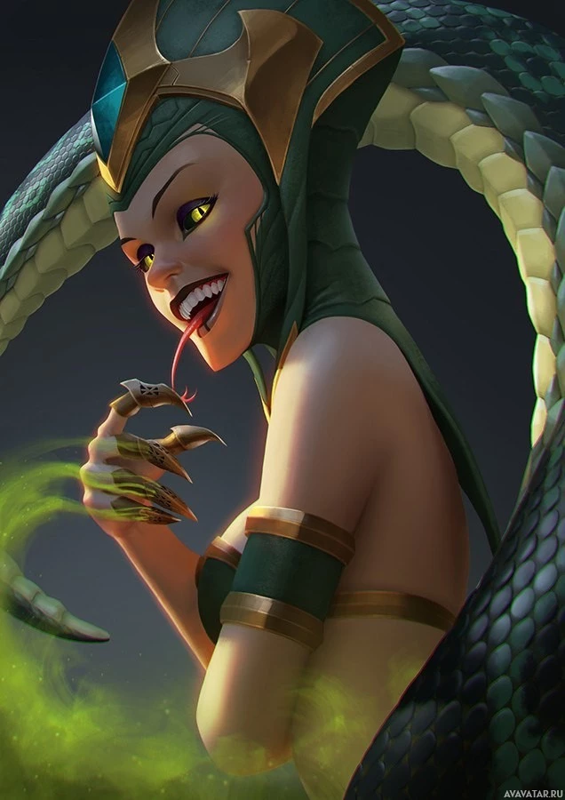 a fantasy character that appears to be a naga, which is a creature from mythology and various fantasy stories. This particular naga has human-like features with