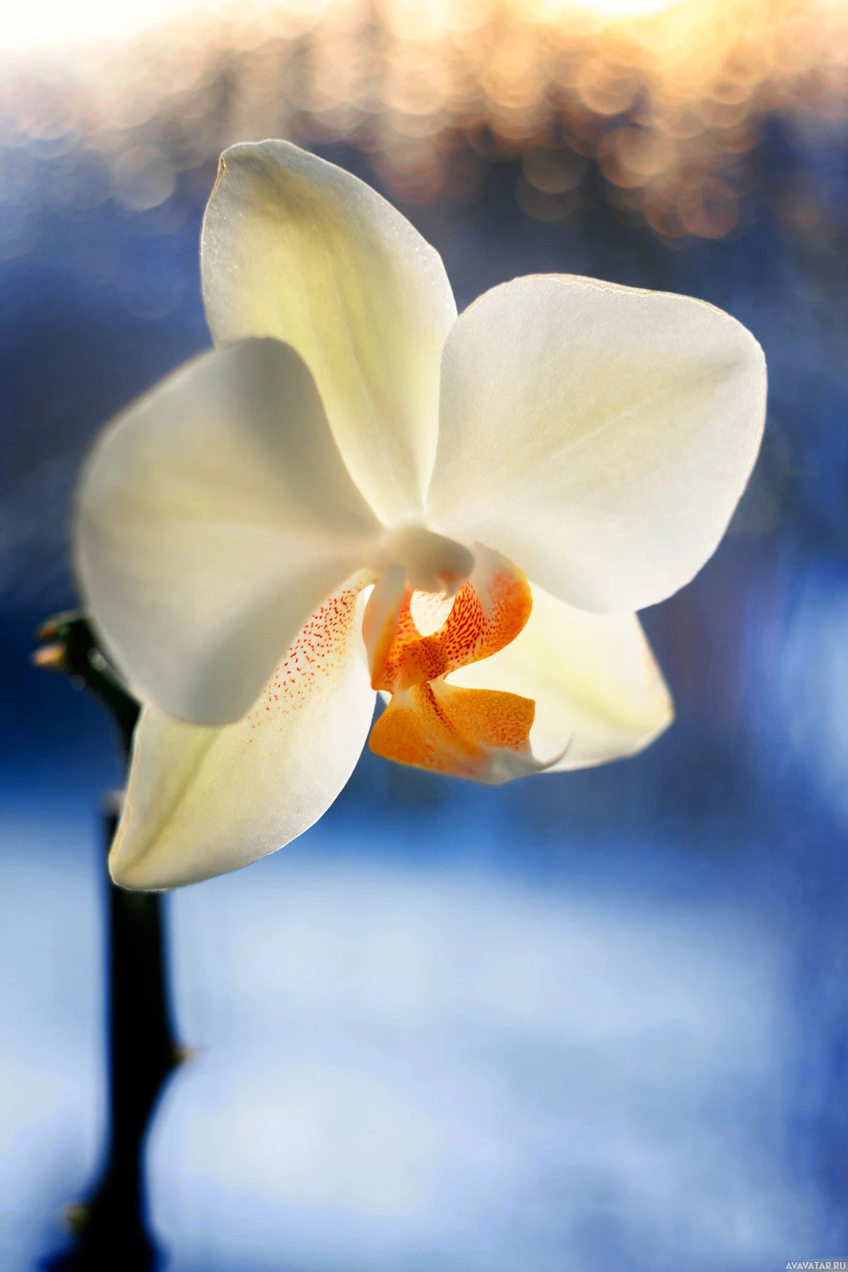 The image shows a single orchid flower with its petals fully unfurled, revealing