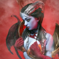 This is a digitally altered image featuring a woman with cosplay makeup and costume that resembles the character Queen of Pain from