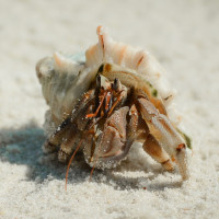 На снимке изображен маленький краб, который является животным. Крабы известны своей способностью ходить боком и имеют когти, которые они используют для различных видов деятельности, таких как кормление и защита.