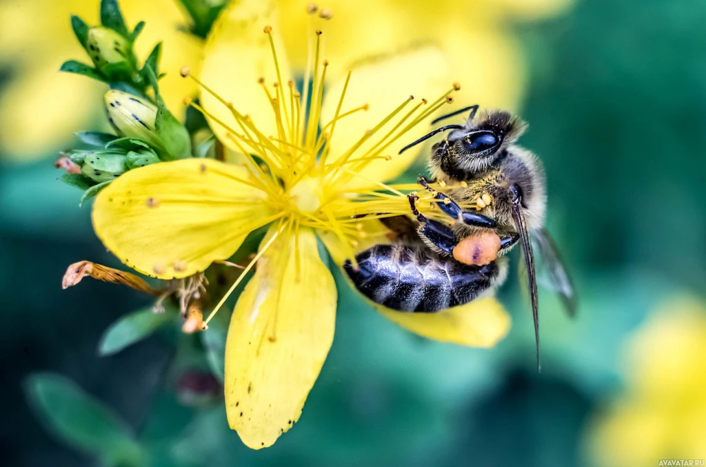 the natural behavior of bees as they visit flowers for their sustenance and pollination activities.