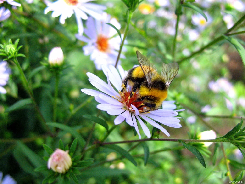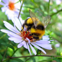In the picture, there is a bee, which is an insect. It appears to be a bumblebee due to its distinctive