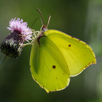 yellow butterfly perched on the flowers. It is