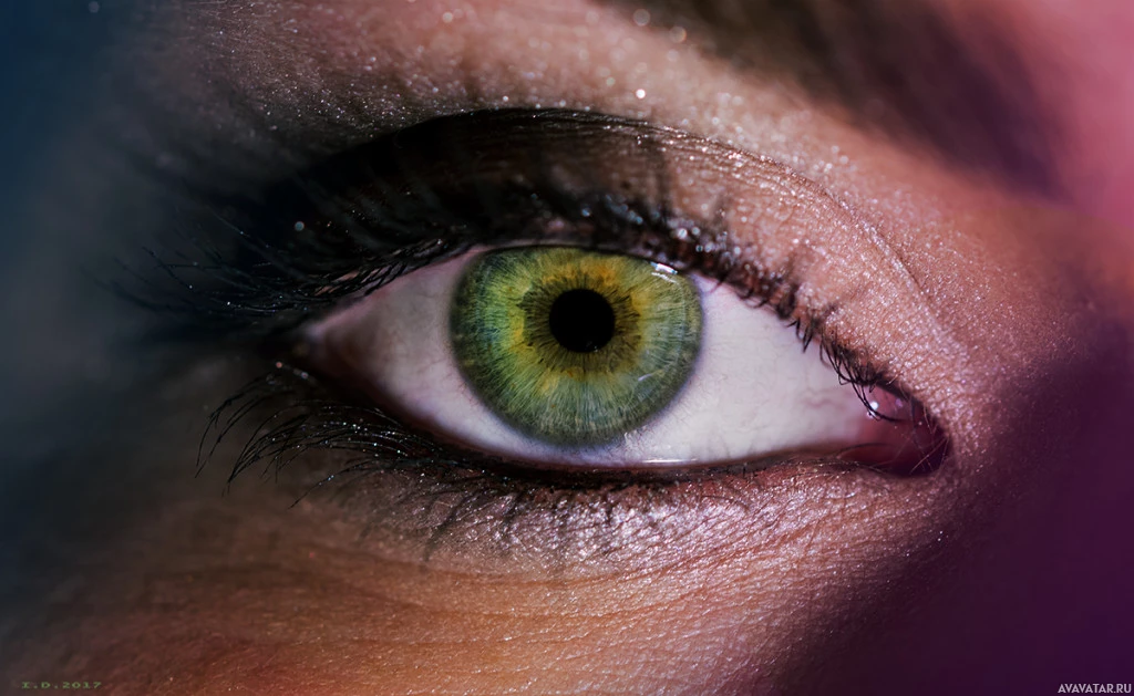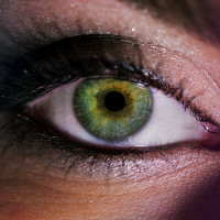a human eye. The image captures the eye's iris and pupil in detail, with a focus on