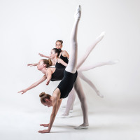 pointe shoes on their feet, which are essential for ballet dancers. The background is plain white, highlighting the dancers and their