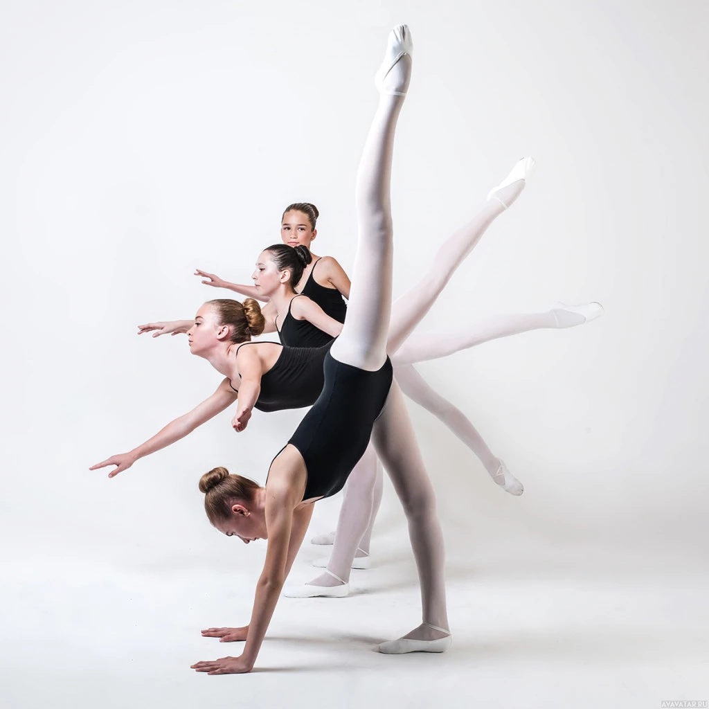 The image shows four ballerinas in
