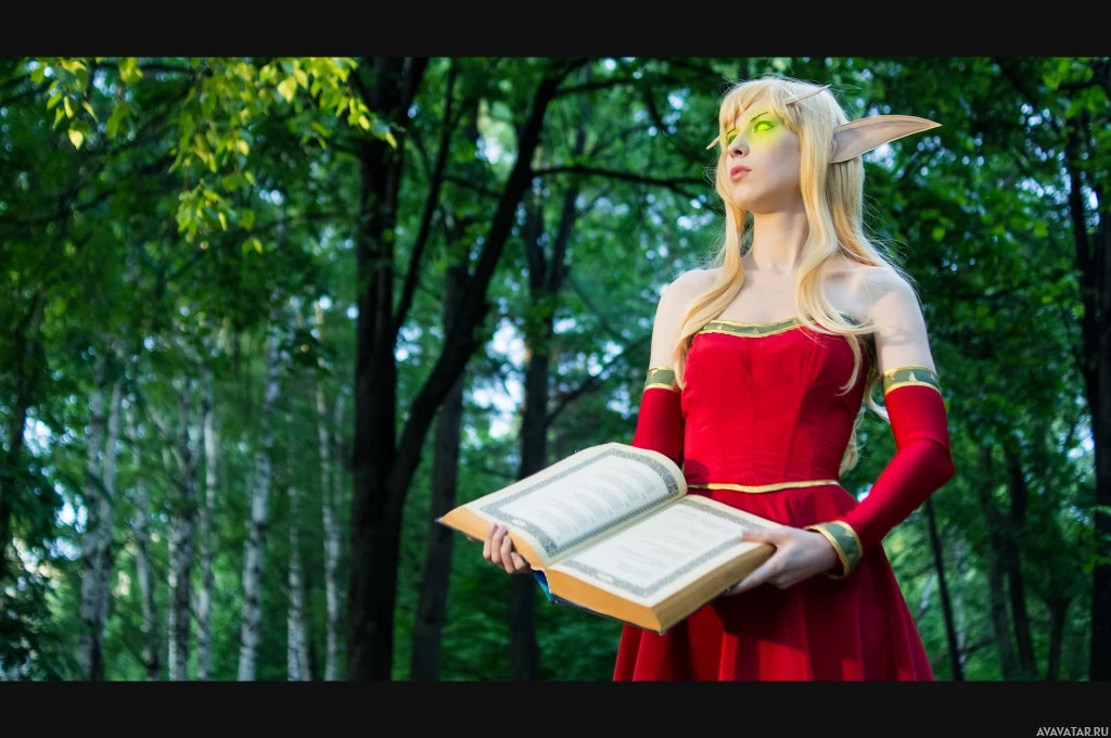The image shows a person dressed as an elf character from the fantasy genre, likely inspired by