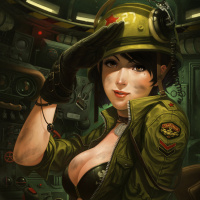 brown hair and is wearing military attire, including a helmet with a visor and goggles on her forehead. The character is saluting, which is a gesture of respect or greeting in