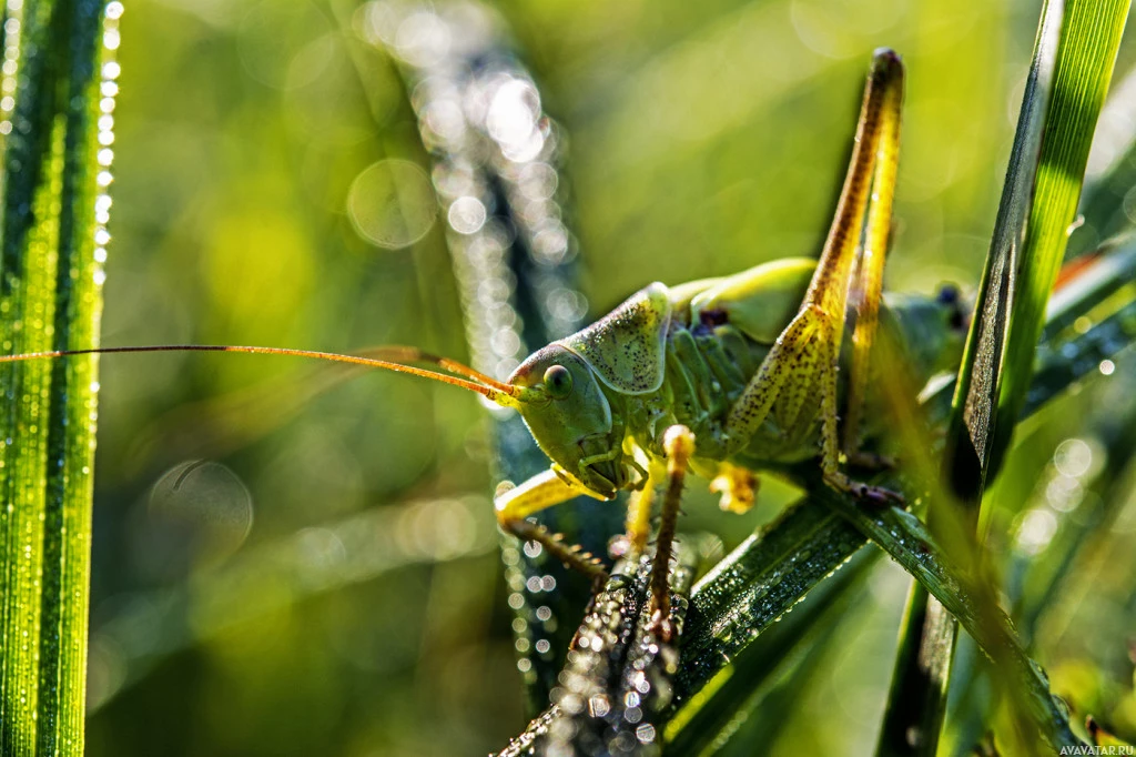 The image shows a grasshopper perched on top of what appears to be