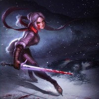 In this image, there is a character depicted who resembles Ciri from