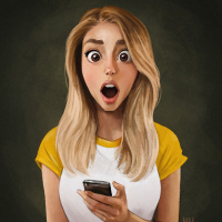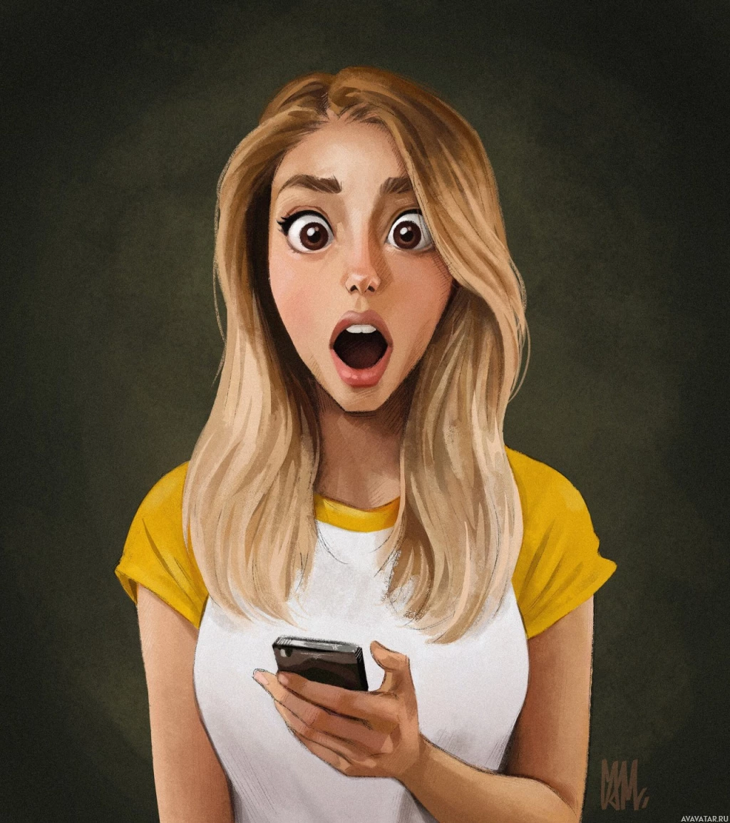 A woman with blonde hair is seen in the image, holding a cell phone to her ear as if she's surprised or shocked. The color palette appears to be warm with soft lighting.