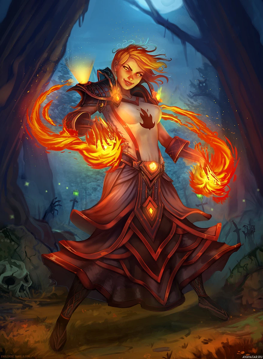 the use of fire as a motif are consistent with fantasy themes often associated with wizards, sorcerers, or enchantresses.
