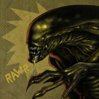 an iconic creature known for its distinctive appearance and trademark "Ripley's ragged breathing." This particular depiction emphasizes the character's teeth and