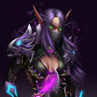 purple hair, and her attire consists of armor with intricate designs and what looks like magical or technological components. The overall vibe suggests she is a warrior or a mage equipped with various gadgets or powers that might enhance her