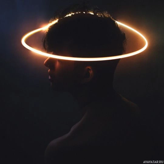 На снимке изображен человек, одетый в круглую светоизлучающую повязку. Это устройство иногда называют «гало» или «кольцевой свет». Кажется, что он освещается изнутри, обеспечивая ореол света вокруг головы и лица.