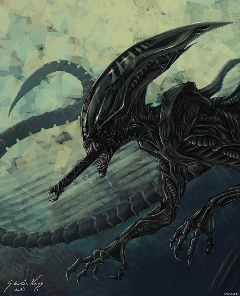 The image shows a depiction of the Alien from the "Aliens"