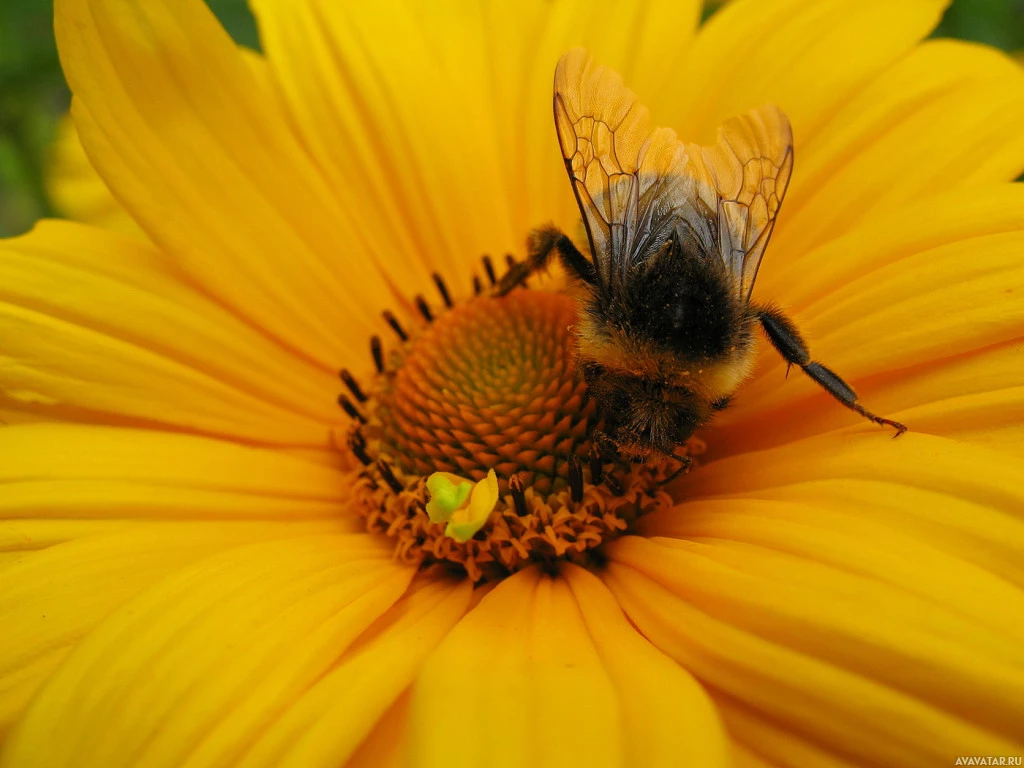 In the picture, there is a bumblebee hovering above