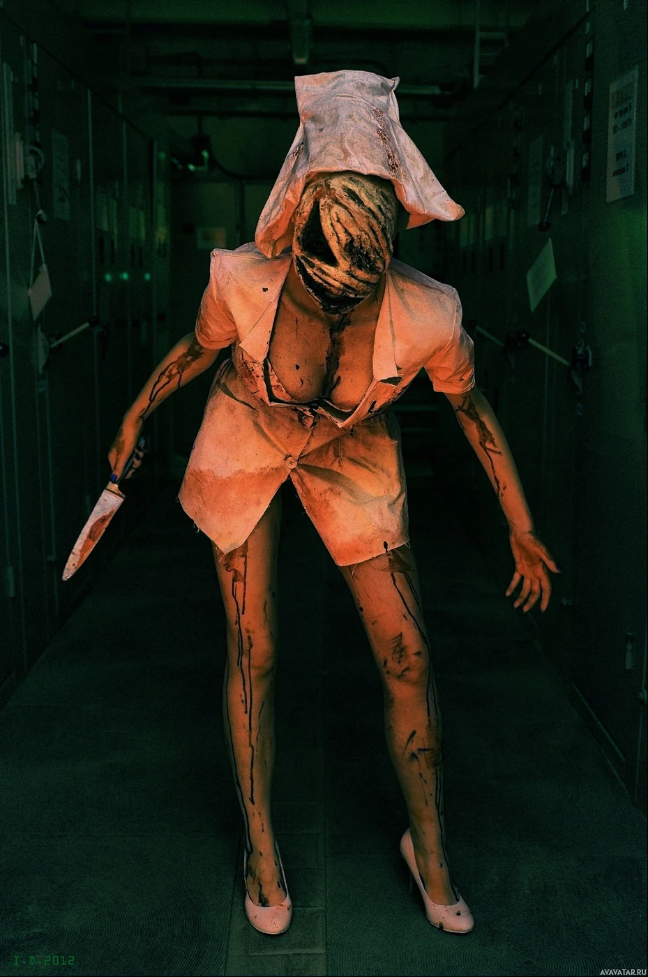 The image depicts a figure that appears to be a zombie-like character with visible bloodstains and disheveled clothing. It is holding what seems to be