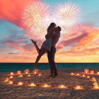 New Year's Eve or another celebration. The couple appears to be enjoying the moment, possibly celebrating their love or