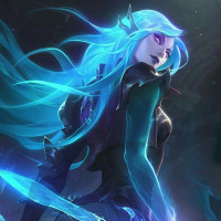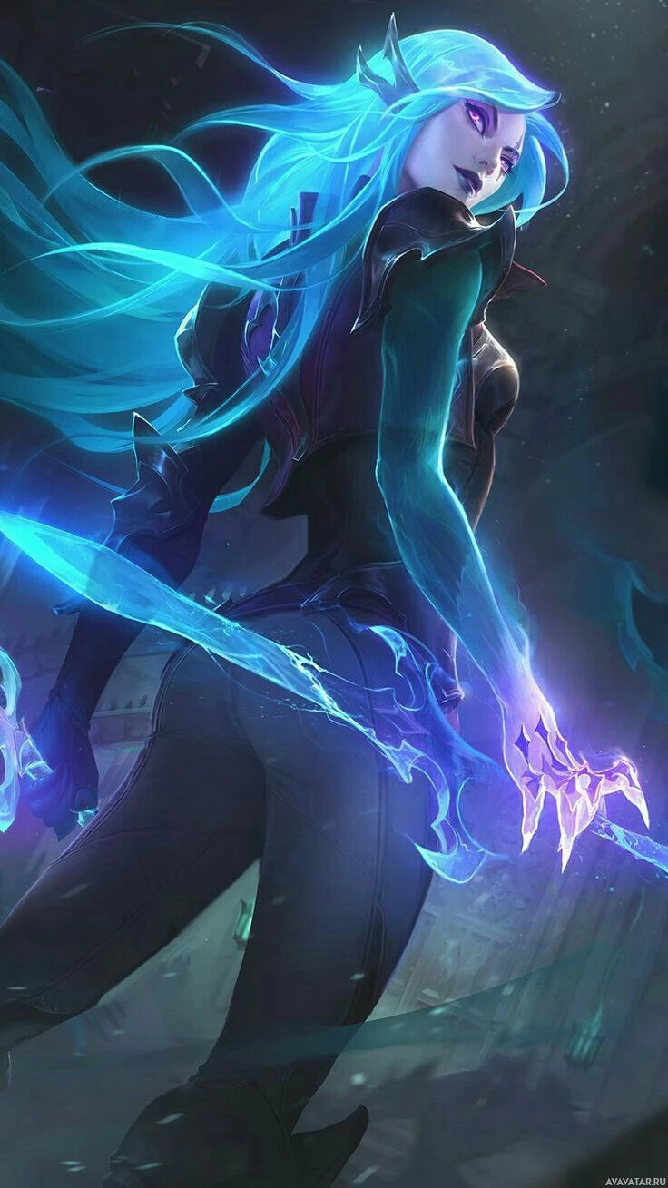 a female character with long blue hair, who appears to be from a fantasy or video game setting. She is dressed in
