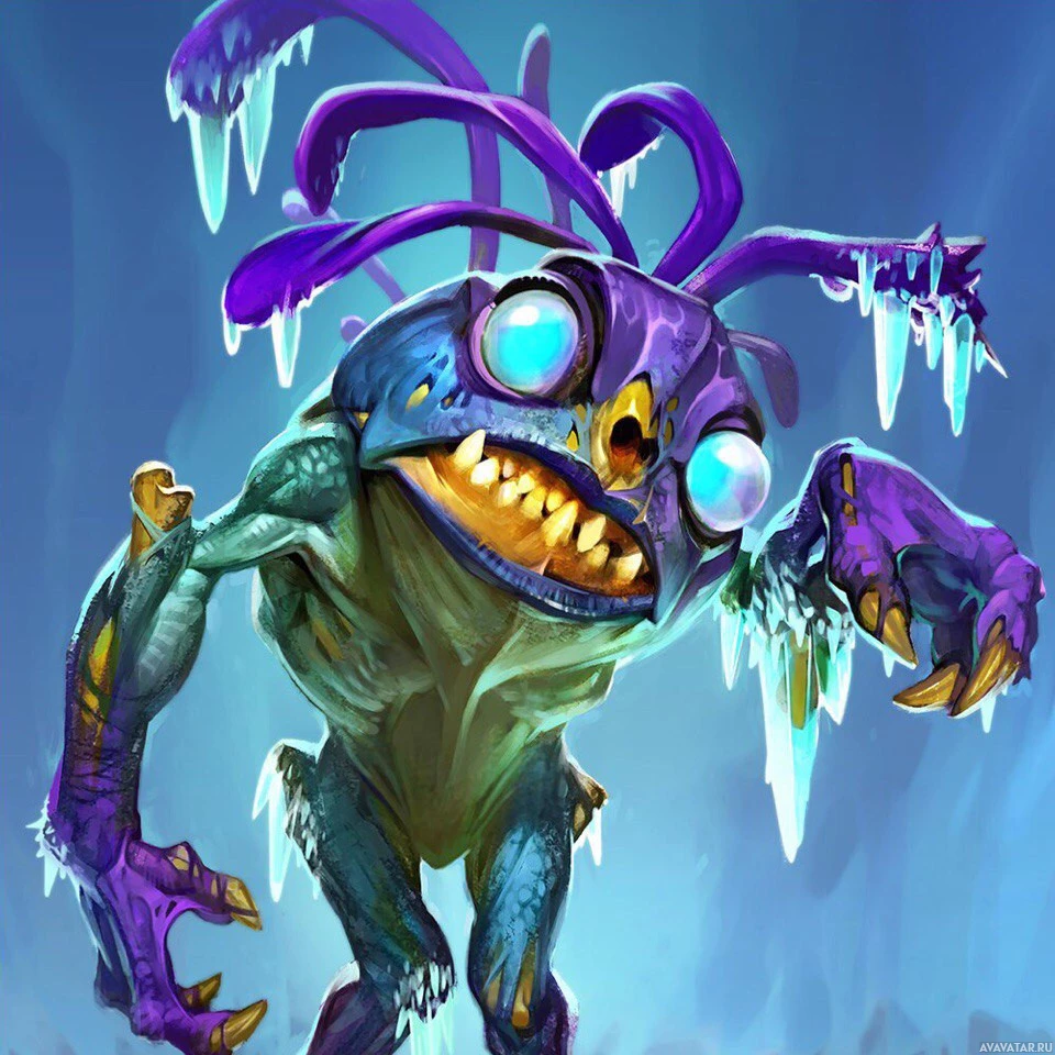 coastal areas in the game's world. This particular murloc is depicted with icicles hanging from its mouth, suggesting a cold or icy environment. The artwork is detailed and vibrant, capturing the essence of the creature while adding