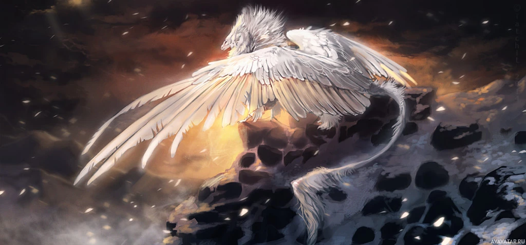 a fantasy scene with a dragon. The dragon has large, spread wings and is set against an ominous