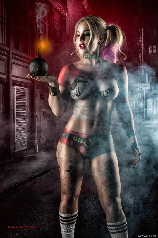 a female character that is styled after the iconic comic book villain Harley Quinn, who is known for her association with the Joker and her unconventional fashion choices. This particular portrayal of