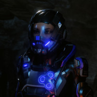 a science fiction setting, and the character is wearing armor that suggests a role as a guardian or warrior within the game's universe. The design of the armor incorporates futuristic elements, with a visor, gloves, and chest piece that indicate