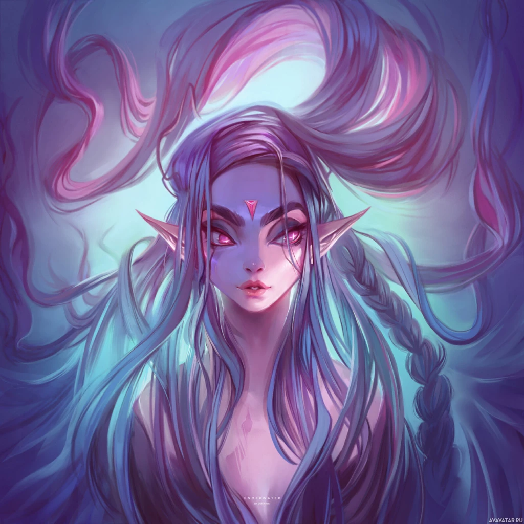 The image depicts a character that appears to be an elf or fantasy creature, with a striking and detailed design. The character has long flowing