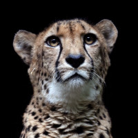 The image features a cheetah, which is an animal known for its speed and agility. The cheetah is looking directly at the camera with