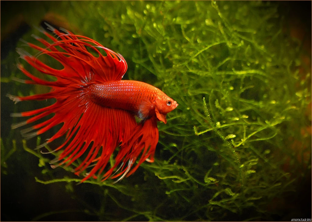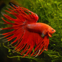 vibrant colors and long fins. It is swimming in what appears to be an aquarium with