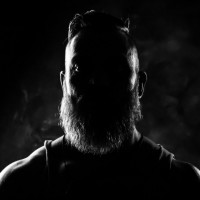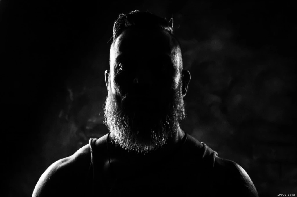 The image shows a silhouette of a person with a beard and