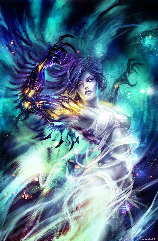 an air of elegance and power. The overall atmosphere of the artwork is quite mystical and could be associated with themes of fantasy, magic, and possibly