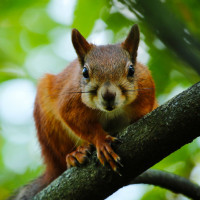 an outdoor setting with natural greenery. There are no people or other animals visible in the picture.