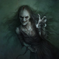 a ghostly figure with a pale, haunting appearance. It's dressed in what seems to be