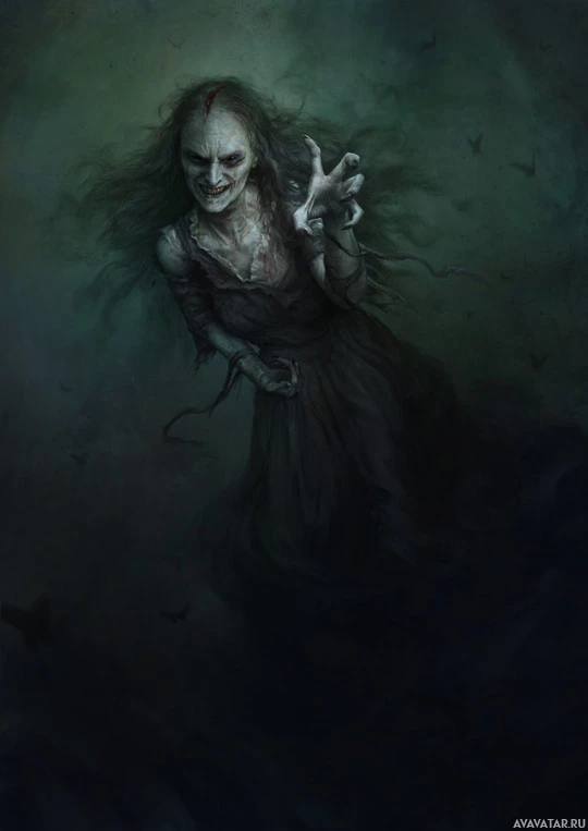dark clothing or tattered rags, suggesting it might be from an older horror story or movie. The ghost is depicted in